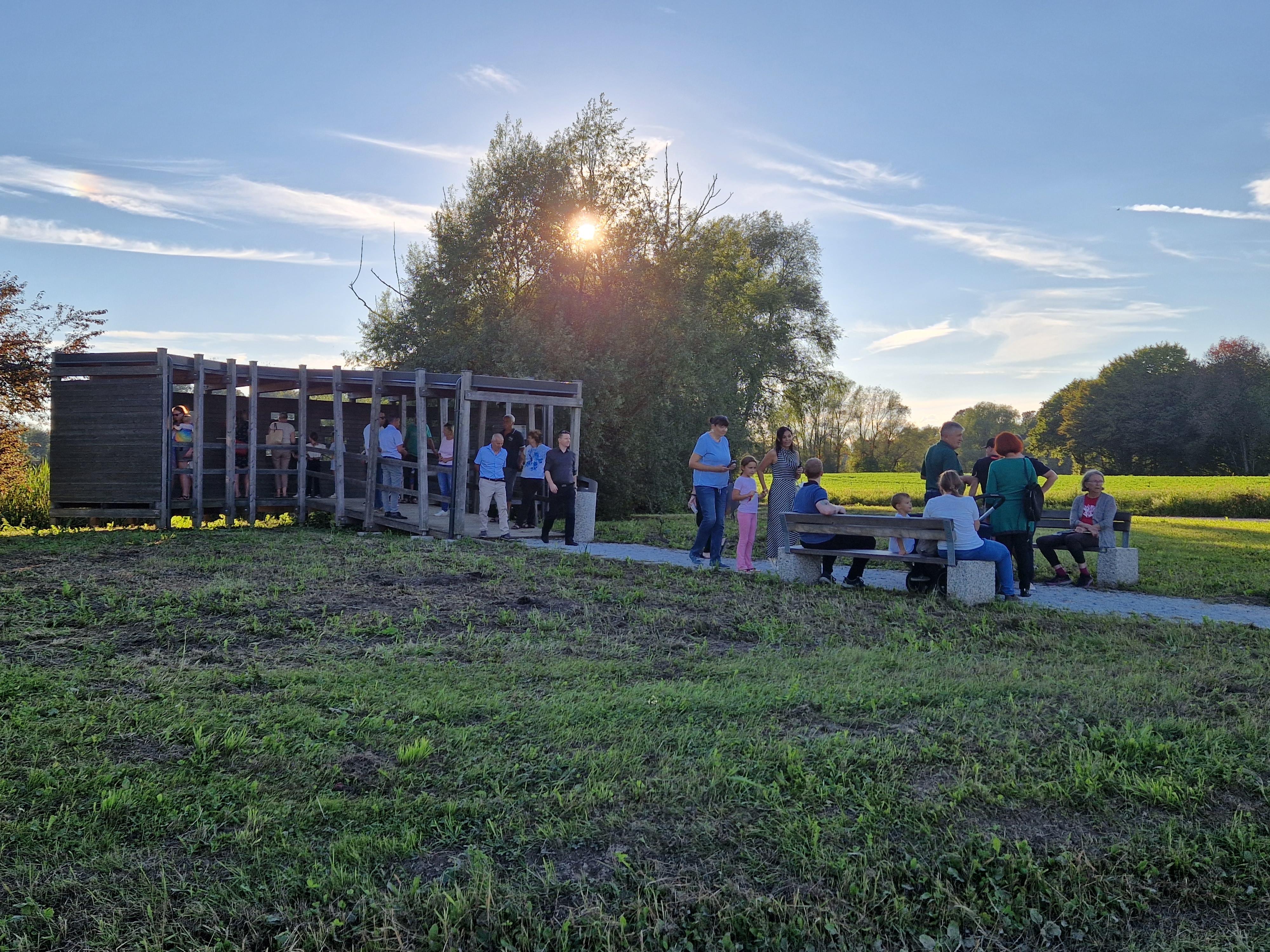Na predstavitvenem dogodku so zbrane pozdravili Aco Franc Šuštar (predsednik LAS Za mesto in vas in župan Vodic), Marjeta Jerič (MKGP), medvoški župan Nejc Smole, trzinski župan Peter Ložar ter Matej Gojčič, namestnik direktorice RRA LUR (vodilni partner LAS Za mesto in vas). Nataša Zupančič je predstavila projekt »Zgodbe naših mokrišč«, Andreja Škvarč iz ZRSVN pa predstavila pomemben pomen mokrišč. Sledil je sprehod do Hraškega bajerja, kjer so številni obiskovalci lahko videli enega od rezultatov projekta - opazovalnico. Najmlajši obiskovalci so imeli priložnost, da so mokrišča spoznavali skozi zgodbo in delavnice, ki so jih pripravili ZRSVN.