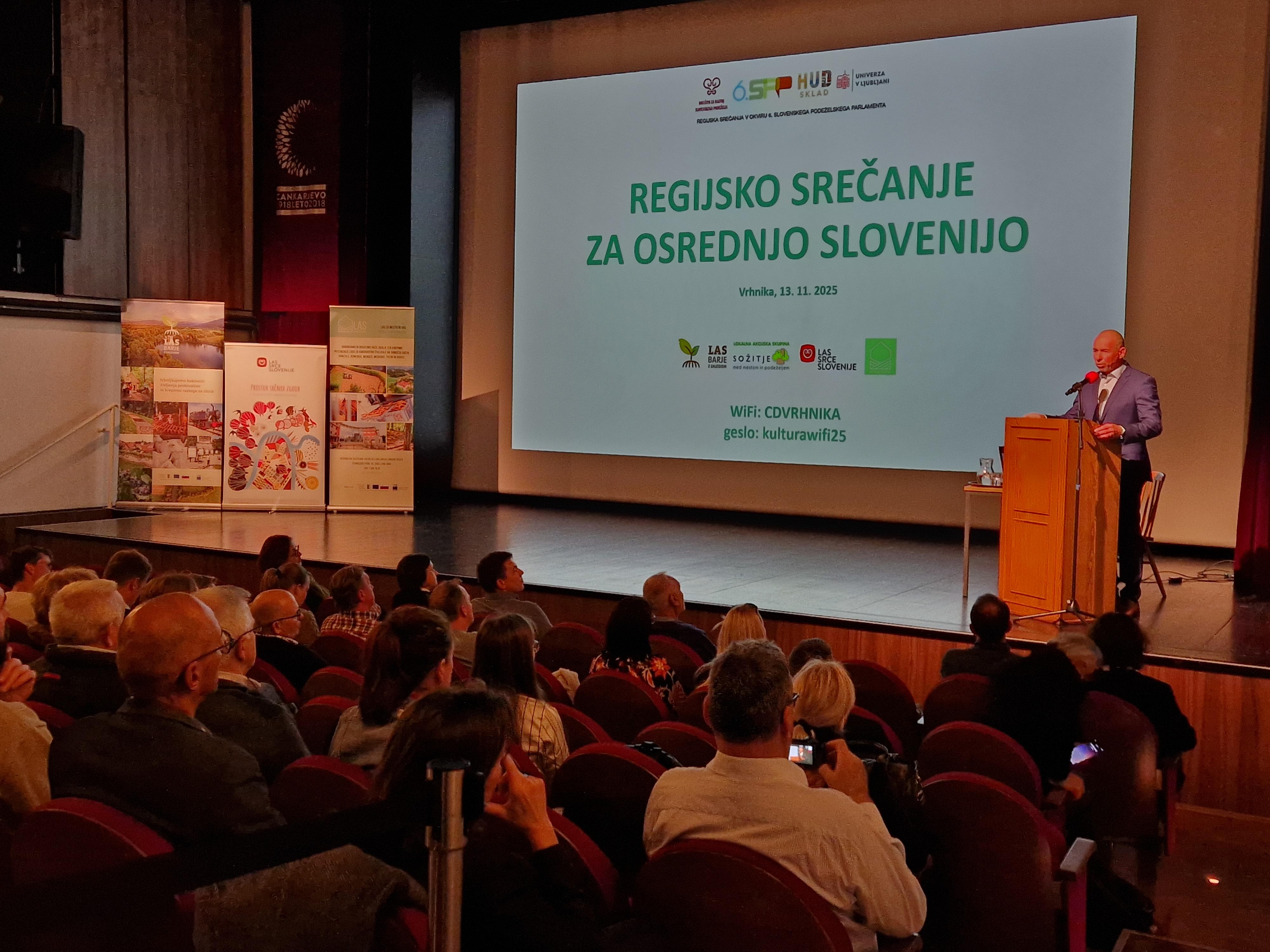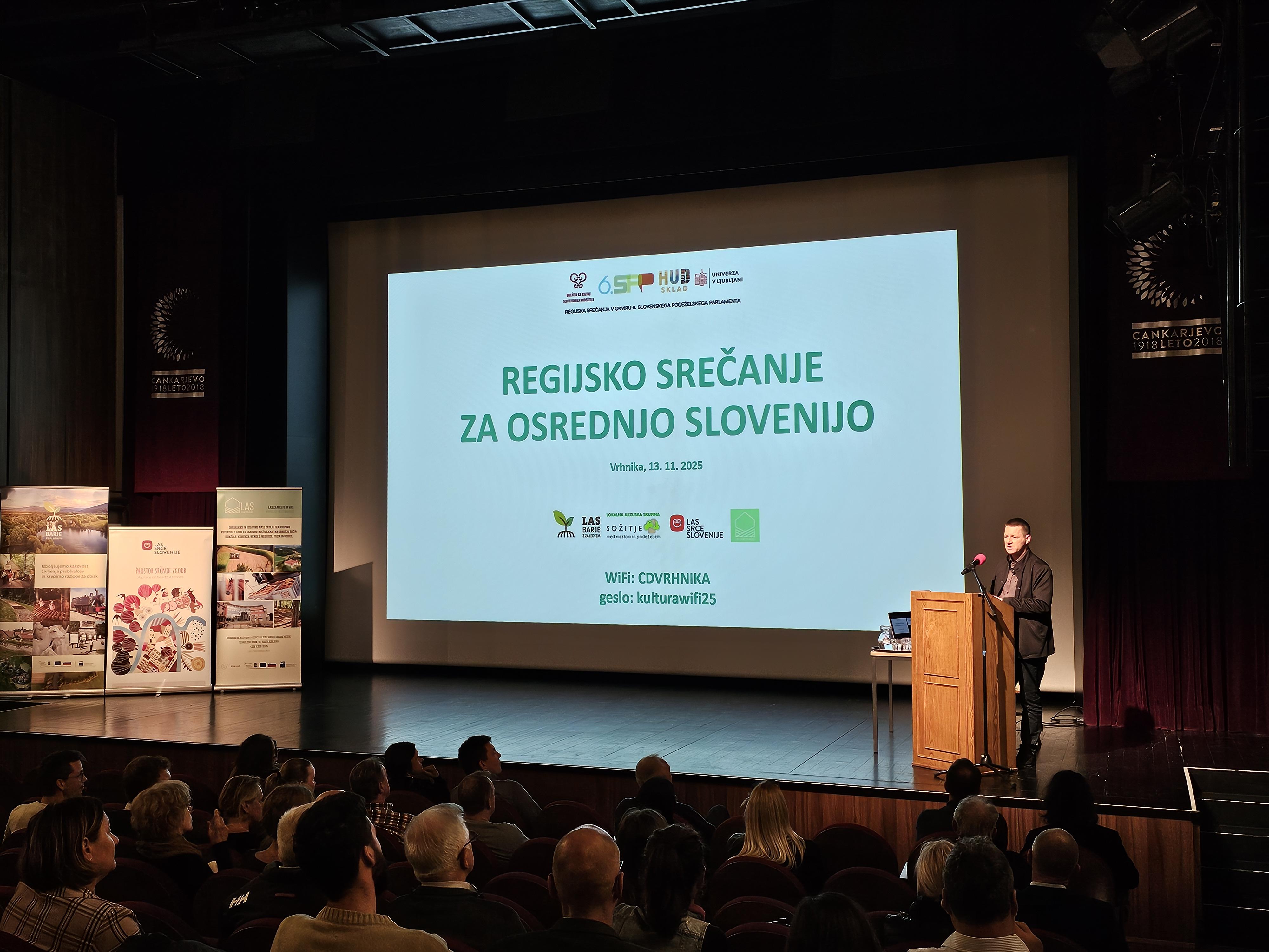 V Cankarjevem domu na Vrhniki je 13. 11. 2025 potekalo Osrednjeslovensko regijsko srečanje v okviru priprav na 6. Slovenski podeželski parlament, osrednji nacionalni dogodek, ki bo junija 2026.